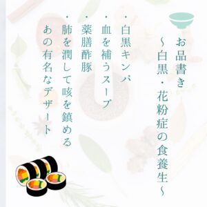 第2回目の薬膳料理教室の テーマは「白黒薬膳、花粉症の養生」です!