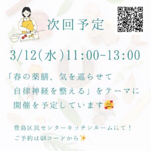 「春の薬膳、気を巡らせて自律神経を整える」を テーマに開催を予定しています🥰
