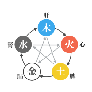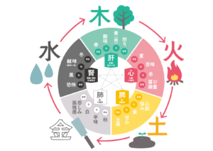 - 五行論:「木・火・土・金・水」の五つの要素で体や自然を分析