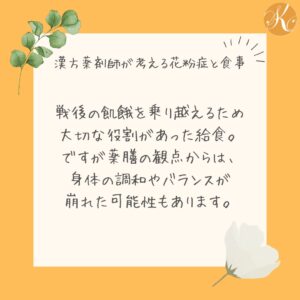 戦後の給食の実態を例にすると私が生業としている薬膳や漢方薬など